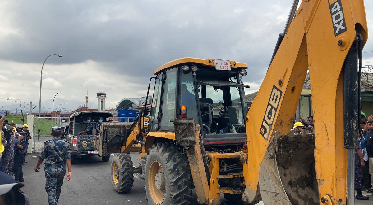 काठमाडौँबाट पोखरातर्फ प्रस्थान गर्ने क्रममा त्रिभुवन अन्तर्राष्ट्रिय विमानस्थलमा बुधबार बिहान दुर्घटनाग्रस्त सौर्य एयरको विमानको अवशेष । तस्बिरः किरणराज विष्ट÷रासस