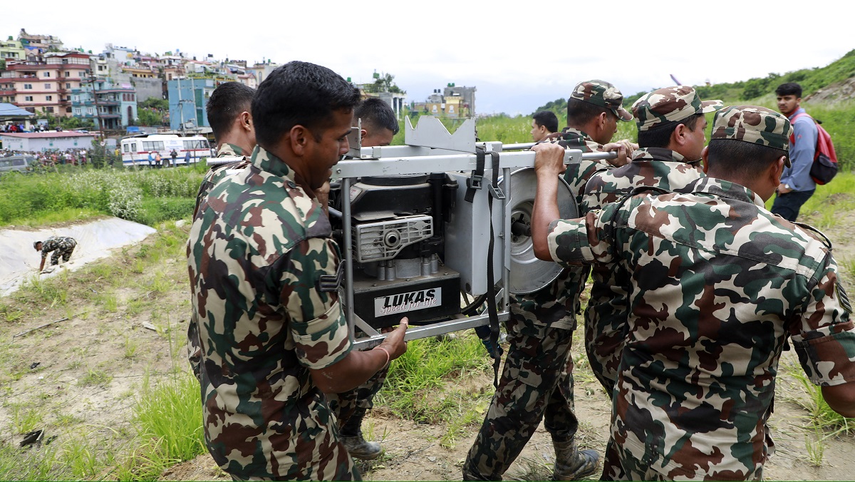 काठमाडौँबाट पोखरातर्फ प्रस्थान गर्ने क्रममा त्रिभुवन अन्तर्राष्ट्रिय विमानस्थलमा बुधबार बिहान दुर्घटनाग्रस्त सौर्य एयरको विमानमा जडित उपकरण सुरक्षितस्थलतर्फ लगिँदै तस्बिरः किरणराज विष्ट÷रासस