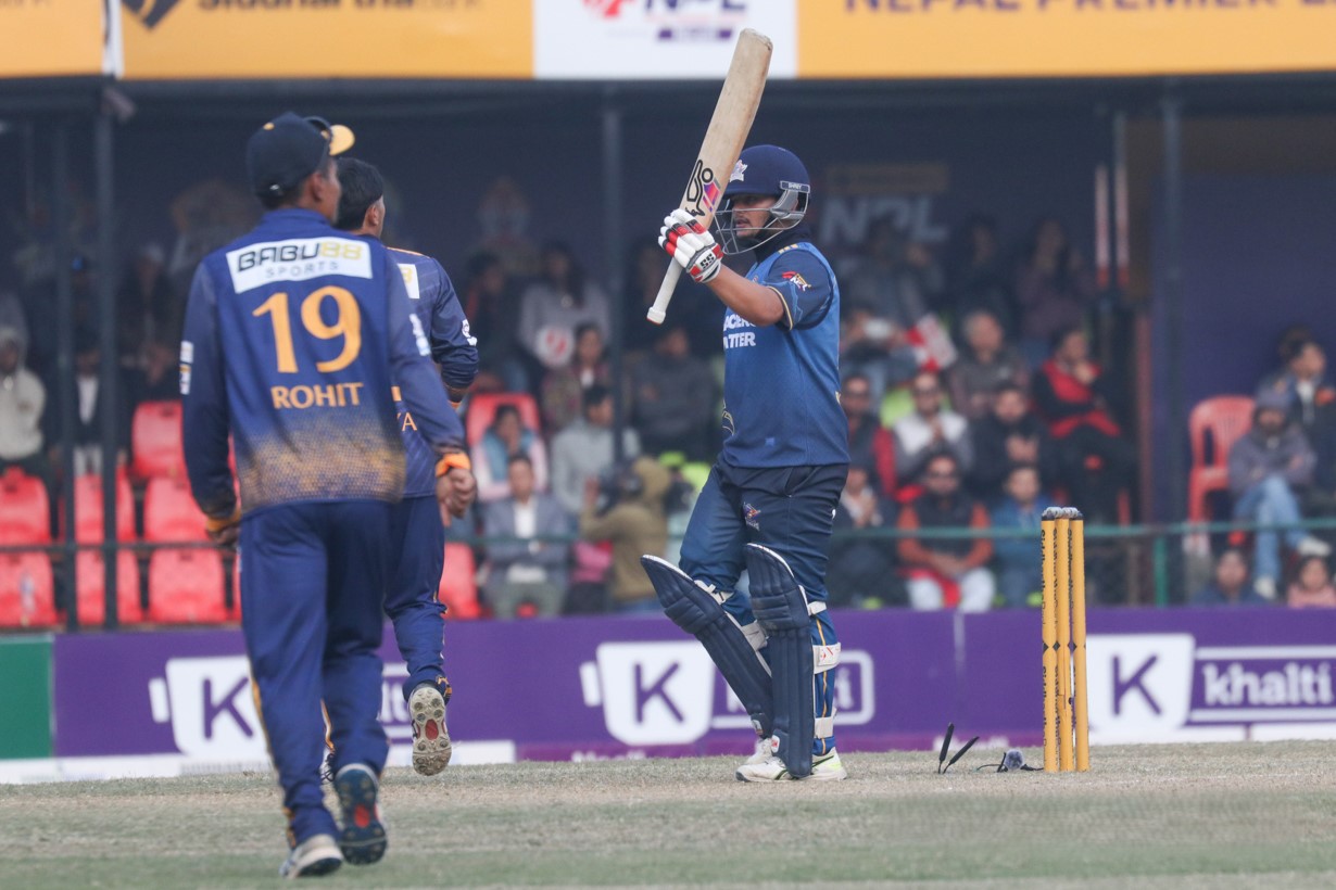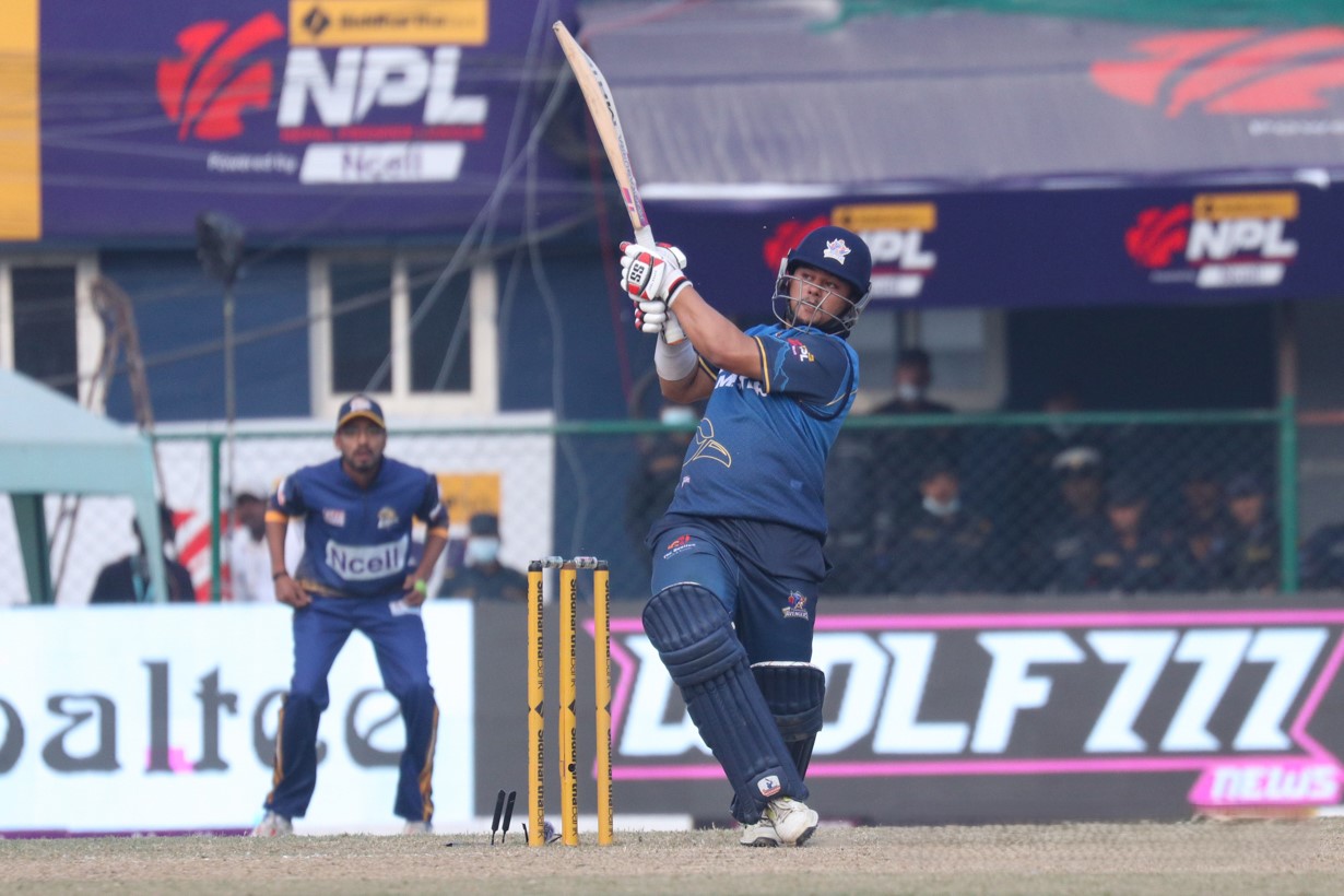 चितवन राइनोजविरुद्धको पहिलो खेलमा कप्तान कुशल भुर्तेलसँग ओपनर ब्याटर बनेर उनी मैदान प्रवेश गरेका थिए । पहिलो दिन भुर्तेलसँगको साझेदारी जम्न सकेन । १२ बल खेल खेल्दै जम्मा १ रन जोडे । समग्रमा त्यो खेल पोखराको खराब प्रदर्शन मध्ये एक थियो । चितवनका बलर सामु टिक्न नसकेको पोखरा ८७ रनको विशाल रनअन्तरले पराजित भएको थियो ।
