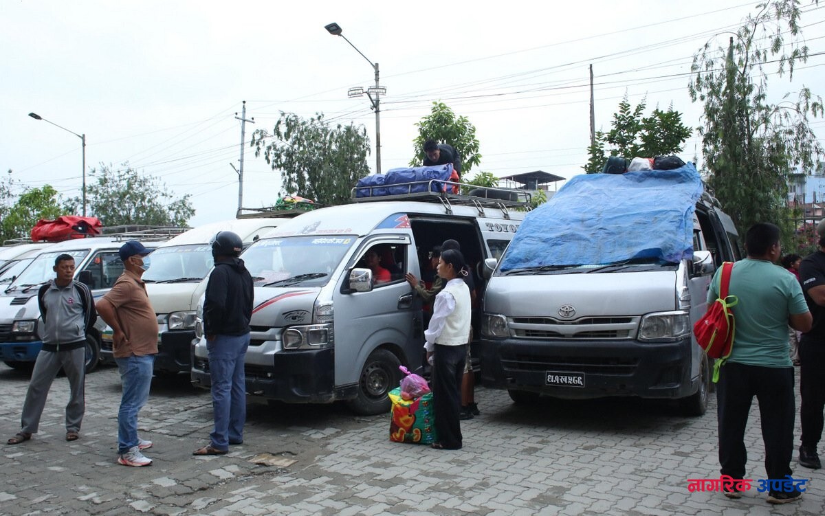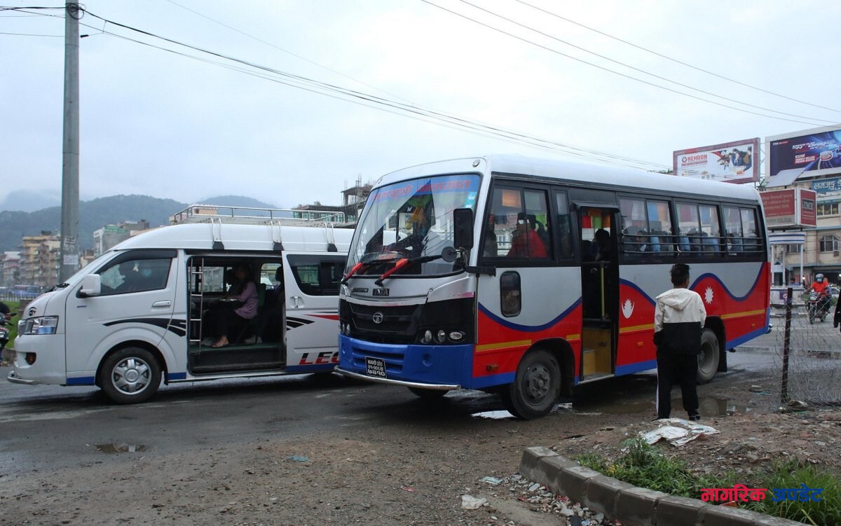 काठमाडौँ । यातायात व्यवसायीले आन्दोलनको कार्यक्रम फिर्ता लिएसँगै सार्वजनिक यातायात पुन सञ्चालनमा आएका छन् । मंगलबार यातायात व्यवसायी महासंघ र सरकारबिच भएको वार्ता सकारात्मक भएसँगै यातायात सञ्चालनमा आएको हो ।