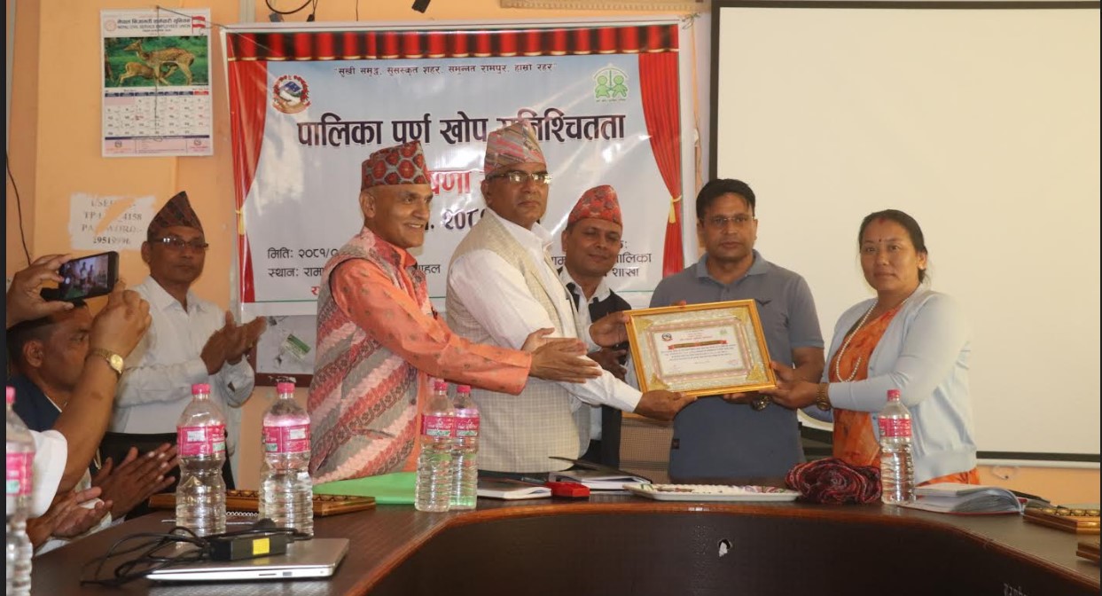 पाल्पा । पाल्पाका १० वटै स्थानीय तहलाई पूर्णखोप सुनिश्चितता पालिका घोषणा गरिएको छ । चालु आर्थिक वर्षमा घोषणा हुन बाँकी रहेको रामपुर नगरपालिकालाई बुधबार घोषणा गरिए सँगै जिल्लाका सबै पालिका पूर्णखोप सुनिश्चितता घोषित भएको हो ।